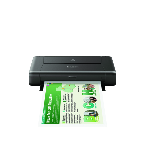 The PIXMA iP110 is a stylish and compact portable printer, which makes it the perfect printing solution for the mobile office. With a battery included as standard, printing quality photos and documents anywhere and anytime is easy.
